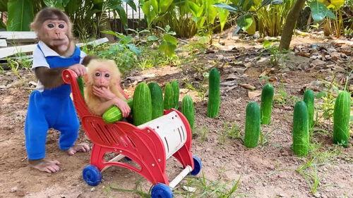 猴子吃黄瓜自己摘瓜视频,趣味视频展现动物智慧与生活趣事
