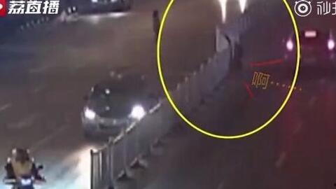 吃瓜群众摔倒护栏视频,视频记录全过程